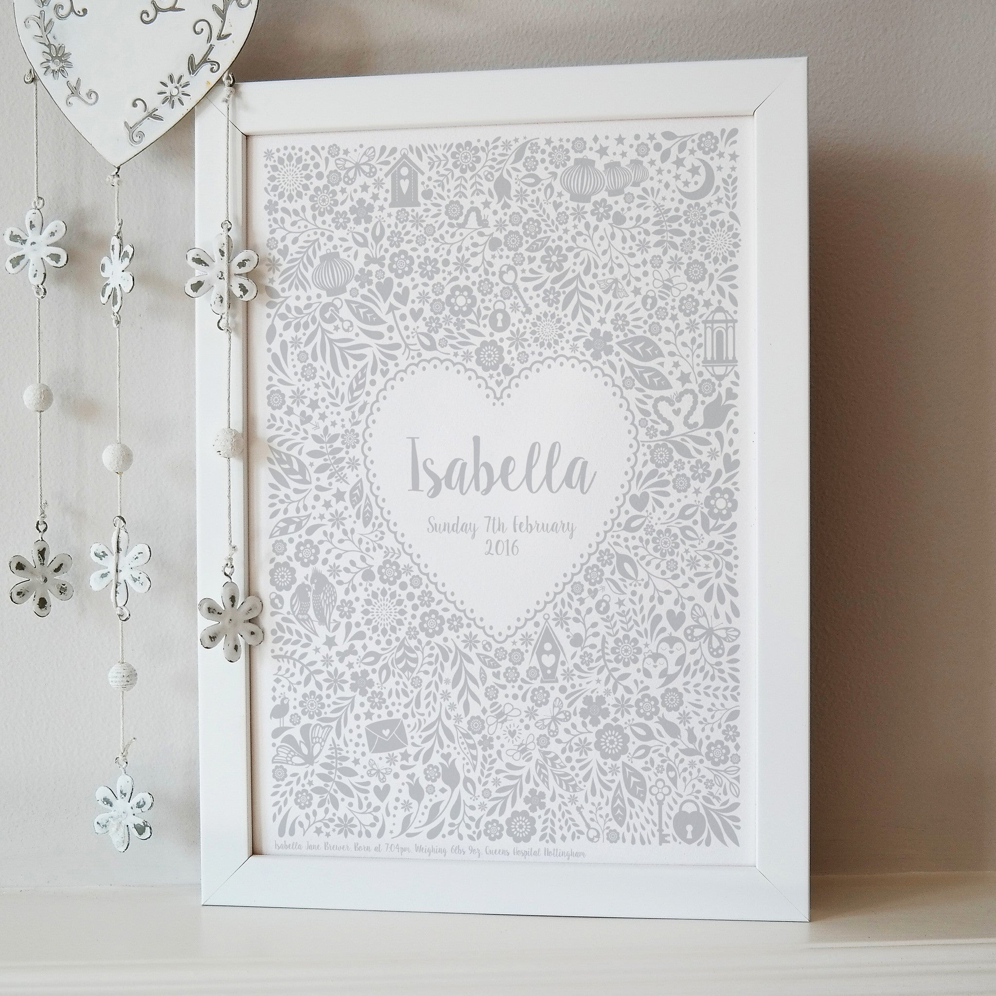 A beautiful personalised heart print that will make a lovely keepsake for a new parent.